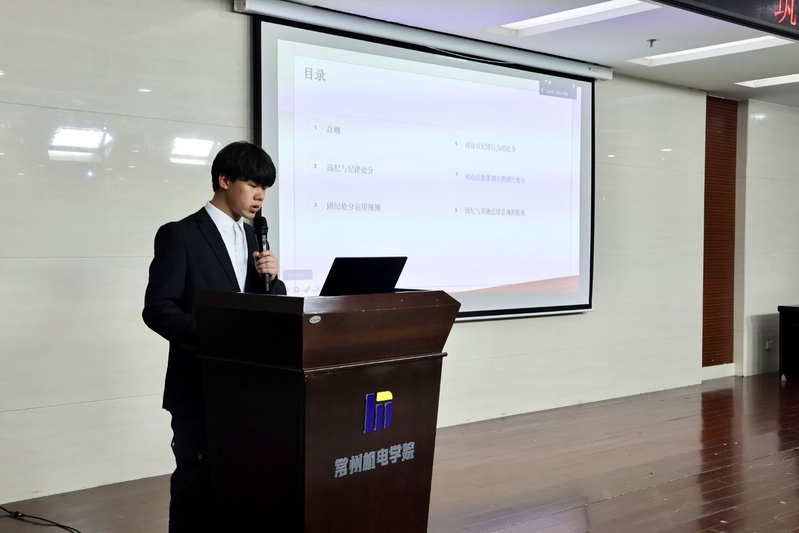 活动中,机制2337班的周瑞同学化身“团纪讲解员”,以清晰的逻辑和详实的内容,向同学们讲解宣读团纪的相关制定,详细介绍了违纪处分的分类,让大家对团的纪律体系有了全面而深入的认识。数设2332班的孙伽乐同学则结合真实生动的案例,重点分析了违反团纪后的处分处罚,让抽象的纪律要求变得具象化。机械工程学院精心制作的违纪处分讲解视频,更是以直观的画面和深入的解读,进一步加深了同学们对团纪律要求的理解,使大家深刻认识到时刻牢记团的纪律、做一名合格共青团员的重要性。