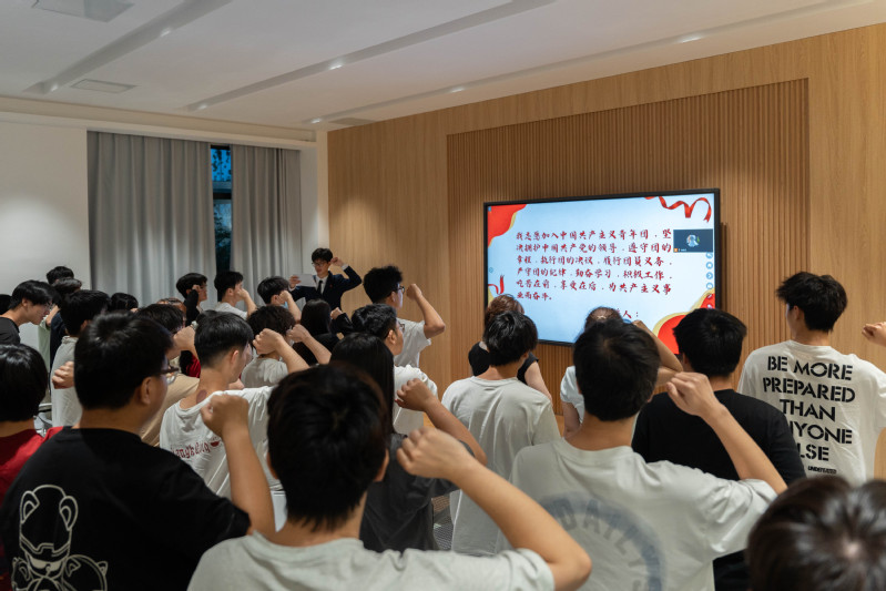 在庄重的氛围中,全体同学跟随主持人的引导,重温入团誓词,共同宣誓。铿锵有力的誓言回荡在蓝厅,彰显了同学们对党的忠诚和为实现青春梦想而奋斗的决心。