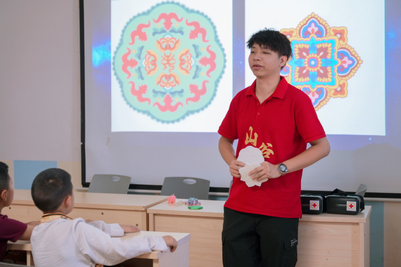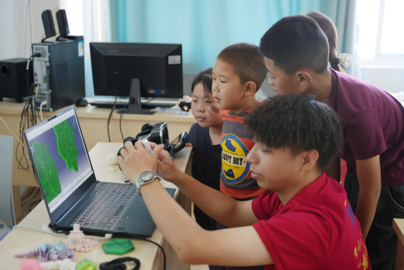 科技启智维度:实践团专访“羌笛演奏及制作技艺”非物质文化遗产代表性传承人杨八零,了解羌笛的历史、制作工艺及演奏技巧。VR非遗体验课上,当地少数民族学生通过VR技术“近距离”观看茂县羌笛,常州梳篦、留青竹刻等非遗技艺制作过程,沉浸式感悟工匠精神与非遗文化底蕴。3D民族纹样科普课上,实践团结合专业特色,介绍3D打印原理及带有民族纹样、羌绣图案的3D打印作品,让少数民族学生为3D民族纹样模型涂色过程中,感受科技赋能使千年民族文化焕新的魅力。