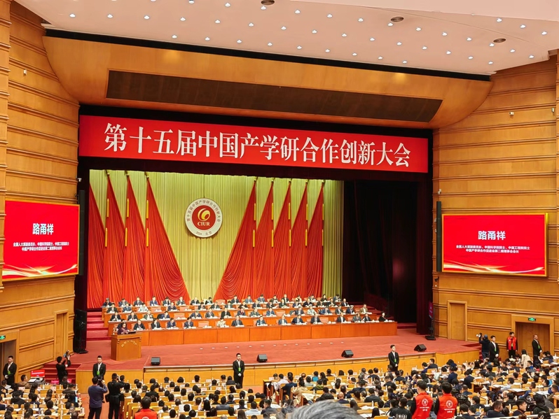 2024年3月16-17日,由中国产学研合作促进会主办的第十五届中国产学研合作创新大会在北京召开。大会以“产学研聚焦:新动能 新模式 新产业”为主题,围绕当前面临的新形势、新任务,探讨新理念、新路径、新作为,促进政产学研用的紧密结合,加速形成新质生产力,将科教兴国、人才强国、创新驱动发展战略落到实处。全国人大原副委员长、中国产学研合作促进会第二届理事会理事长、两院院士路甬祥书面致辞,十三届全国政协副主席、中国科协主席万钢,教育部党组成员、副部长孙尧,工业和信息化部副部长徐晓兰,国家知识产权局党组成员、副局长卢鹏起出席大会并致辞。来自全国一线的政、产、学、研、用各界1000余位代表参加大会。中国产学研合作促进会会长王建华主持大会。