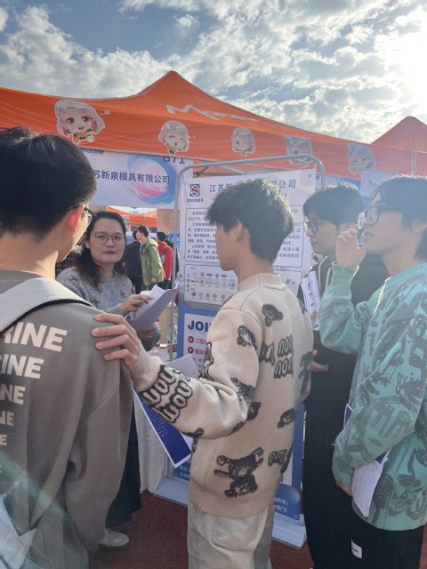 本次招聘会在学院访企拓岗的基础上,汇聚了德力佳传动科技(江苏)股份有限公司、江苏新泉模具有限公司、常州华威模具有限公司、常州星宇车灯股份有限公司等26家优质企业,提供了包含设备检测、模具维修、注塑工艺、质量控制、生产管理储备等1000多个专业对口的实习岗位,精准对接区域产业发展需求。