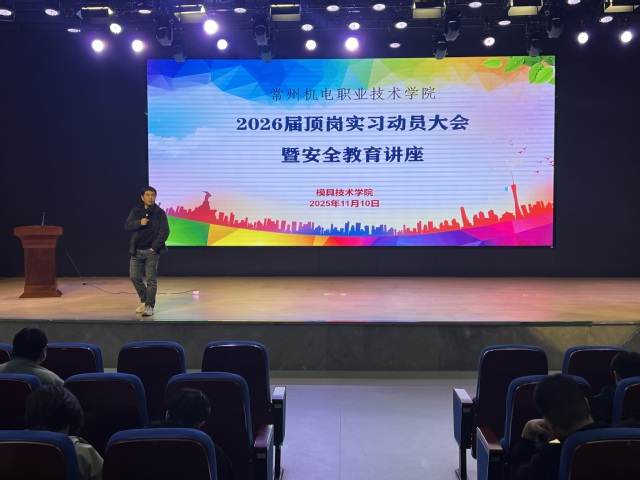 11月10日晚上六点,模具技术学院23级顶岗实习动员会暨安全教育讲座在常州机电职业技术学院溧阳基地顺利召开,出席动员会的有模具技术学院党总支副书记汪小义和模具技术学院就业辅导员陈香娟老师。