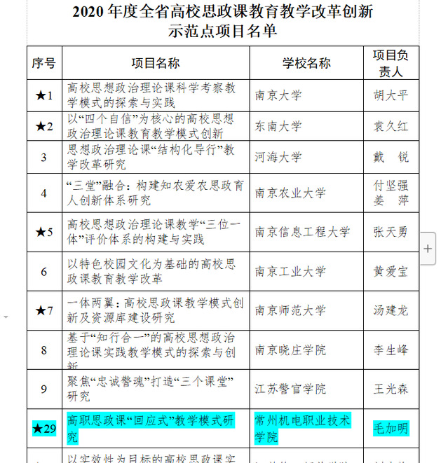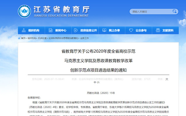 喜报:我部门获批成为2020年江苏省高校示范马克思主义学院培育点和2020年度全省高校思政课教育教学改革创新示范点项目
