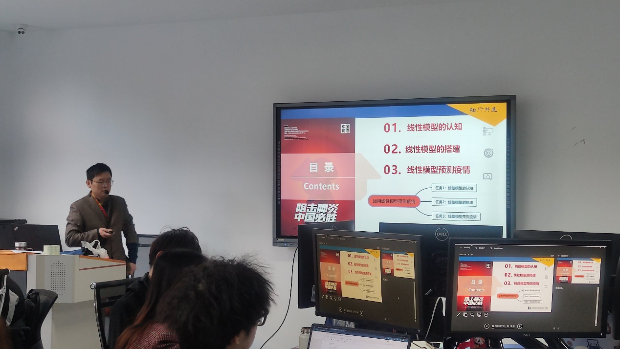 2022年10月25日上午,信息工程学院课程思政示范公开课由杨保华老师主讲《Python机器学习》的《5.5.3线性模型预测疫情》,信息学院领导和马克思主义学院裴智民、高雅、濮扬、王菲老师参与了听课和评课活动。
