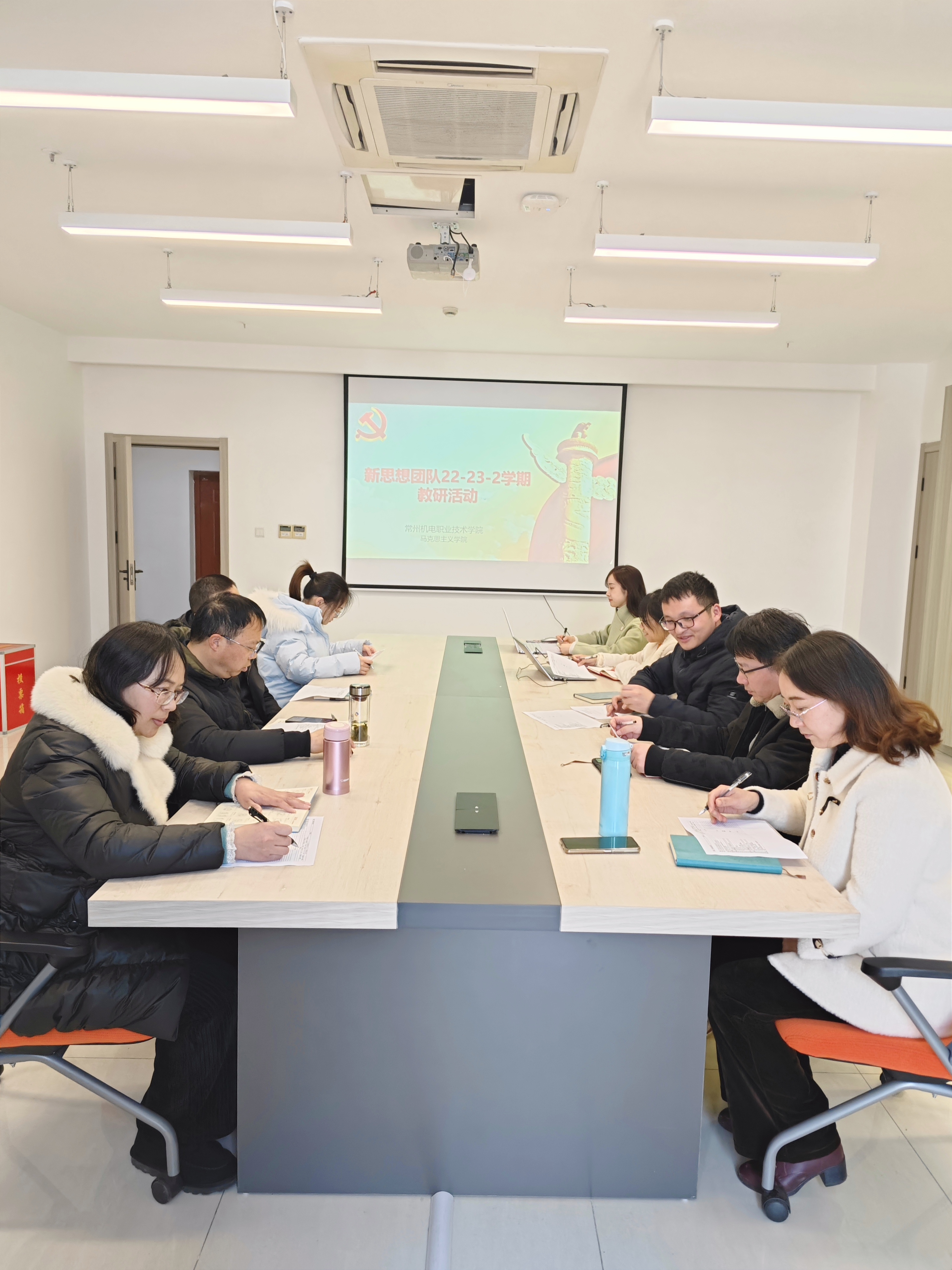 新学期、新气象、新起点、新希望,为更好地推进本学期团队工作,明确新学期教学任务,2月15日下午,马克思主义学院《习近平新时代中国特色社会主义思想概论》课程教学团队在图书馆1014室开展了22-23-2学期第一次教研活动,活动由团队主任许都老师主持,新思想团队全体成员参加了此次活动。