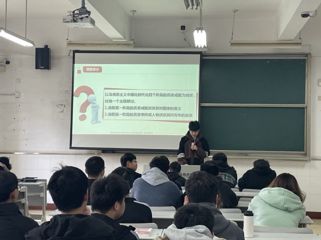 课前,根据学习进度和学生兴趣,王老师设置相关活动环节并投放教学资源,学生做认真准备。课中,学生以马克思主义中国化时代化的四个阶段为线索,选取某一阶段的历史成就、事件或人物谈谈其对国家发展的意义和对青年的启发,如曹梦伟同学以两弹一星的发射为主线讲述了改革开放的重要意义;马玫同学则通过雷锋、刘胡兰的光荣事迹,呼吁大家争做求上进、爱祖国的时代新人。展示结束后,同学们纷纷表示要不负时代,不负韶华,把青春奋斗融入党和人民事业,为实现中华民族伟大复兴贡献青春力量。