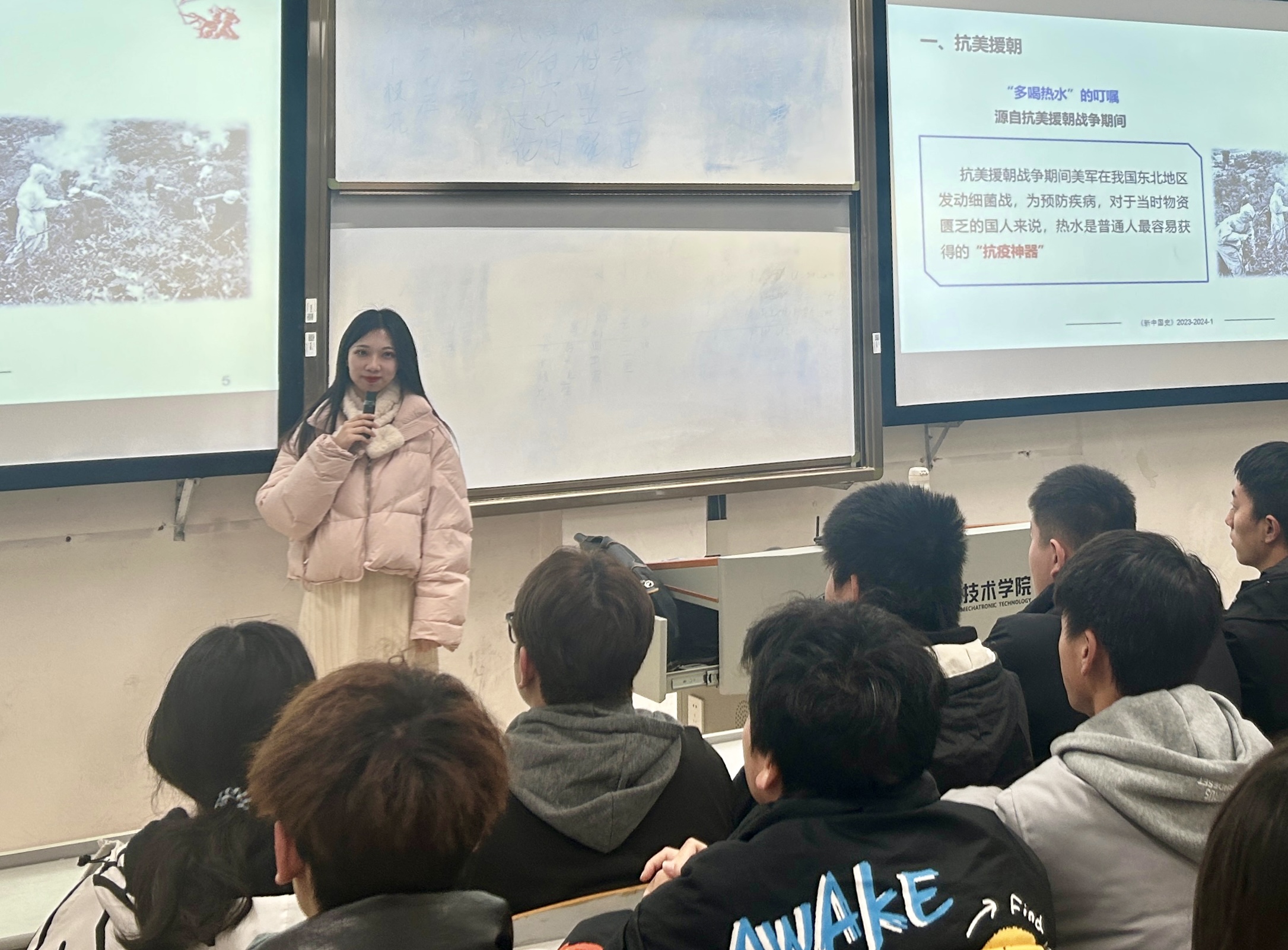 12月18日,马克思主义学院教师高雅在东228为同学们举办了一场题为“抗美援朝与中美关系70年”的讲座。