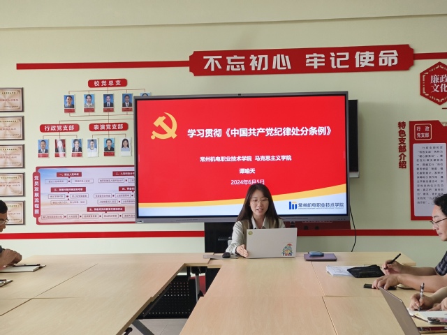 6月5日,我院谭喻天老师应常州艺术高等职业学校艺术设计系邀请,为其支部党员讲授党课。讲座题目是《学习贯彻<中国共产党纪律处分条例>》。