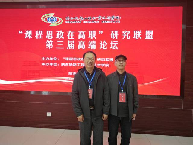 2024年10月27日,“课程思政在高职”研究联盟暨第三届“课程思政在高职”高端论坛在陕西省渭南市召开,由陕西铁道职业技术学院承办。我校“课程思政”教学研究中心裴智民教授、刘俊老师应邀参加。