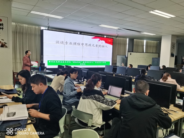 11月14上午,应电气工程学院邀请,我院裴智民教授在校产教园208室为重庆市中职课程实施能力提升(国培)开展《谈谈专业课程中思政元素的融入》专题讲座。