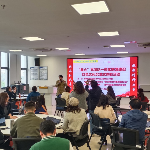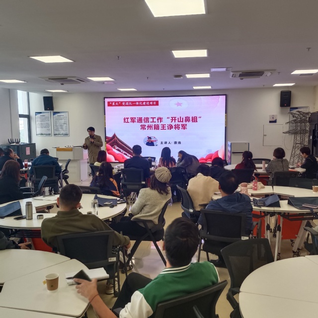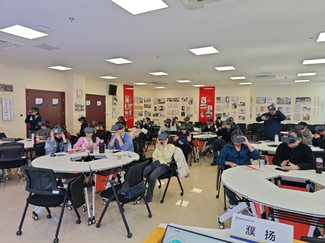 濮扬在常州“四史”资源集成与教育中心首先汇报了VR实训室围绕地方“四史”开展的建设情况和开展的各类教学实践活动,接着和学员们一起开展了VR红色之旅。他作了主题为《红军通信工作“开山鼻祖”——常州籍王诤将军》的讲座。通过聆听讲座,学员们对常州的红色历史有了更深地领悟,爱国之心也瞬间被点燃,接着通过观看飞夺泸定桥的VR资源,学员们能够更加直观地感受革命战争年代的峥嵘岁月,深刻地体会到红军在战争中的不易。最后《美丽中国》的VR资源呈现了锦绣中华大美风光,学员们都惊叹于祖国河山的美丽。活动极大增强了学员们的文化自信和爱国情怀。