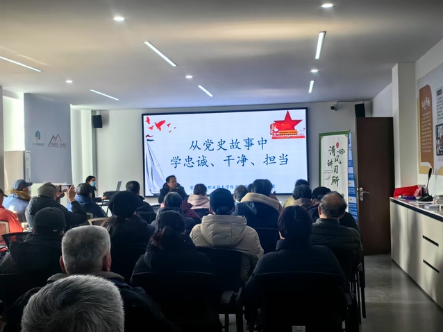 2月24日下午,应钟楼区五星街道都市桃源花苑社区党委邀请,我校马克思主义学院裴智民教授为社区党委参加七十多名离退休党员讲授党课《从党史故事中学忠诚、干净、担当》。