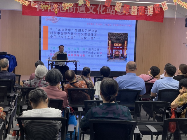 5月22日下午,应钟楼区荷花池街道西新桥三村社区党总支邀请,我校马克思主义学院裴智民教授为社区党员讲授党课《习近平谈治国理政蕴含的国学智慧》。