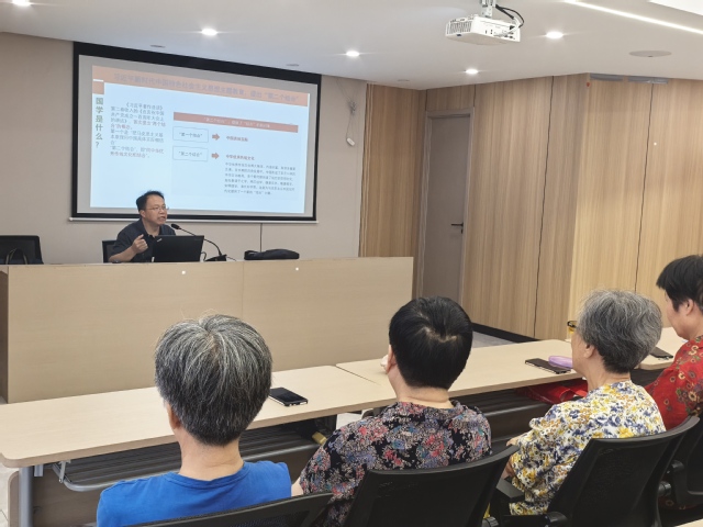 裴老师从国学的含义、习近平总书记对国学的重视、国学对治国理政的滋养例证(14个案例)等几个方面,并结合当前百年未有之大变局的内外局势,为党员干部进行讲解。讲座结束,裴老师与部分党员们进行了交流和探讨,他们都表示:这场讲座让他们经受了一次浓厚的政治文化洗礼。