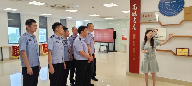 6月20日,常州市交警支队高速二大队党员来我校党建教育实践基地开展党性体验活动,活动由谭喻天老师全程陪同讲解。