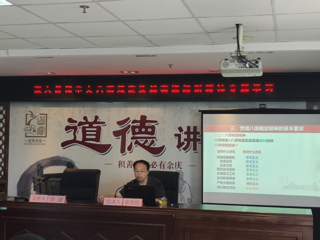 为深入贯彻中央八项规定精神学习教育,持续深化作风建设,筑牢党员干部思想根基, 6月28日上午,武进区南夏墅学府家苑社区党委邀请我校马克思主义学院裴智民教授,为社区党员作《深入贯彻中央八项规定精神学习教育》的主题讲座。