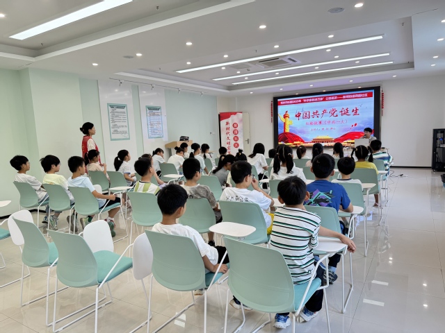 一是红船故事、初心启航。濮扬老师讲述中共“一大”的惊险历程与南湖红船的壮阔史诗,让党跨越百年的信仰之火,从书本跃入心田,在孩子们清澈的眼眸中点燃敬仰的火花。