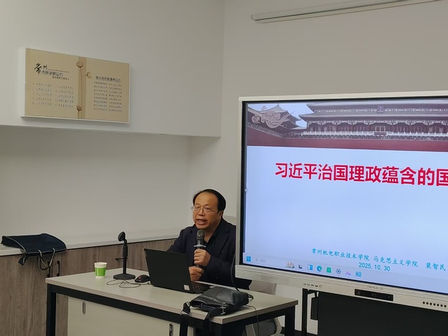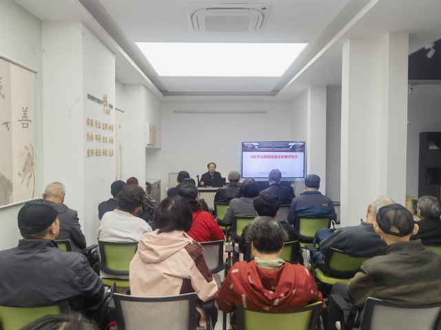 10月30日下午,应钟楼区荷花池社区党总支邀请,我校马克思主义学院裴智民教授为社区党员作题为《习近平治国理政蕴含的国学智慧》的讲座。