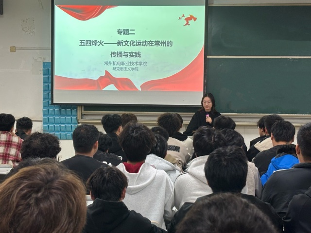 课堂上,马院教师邓芳引领同学们回顾了历史。首先,重点讲述了五四运动的洪流如何波及常州,深刻分析了这场伟大的爱国革命运动对常州本地学生运动的催化作用。随后,课程追溯了马克思主义在常州的早期传播与地方党团组织的筹建过程。最后,课程详细介绍了常州第一个中共党支部的建立过程、主要成员及其历史意义。