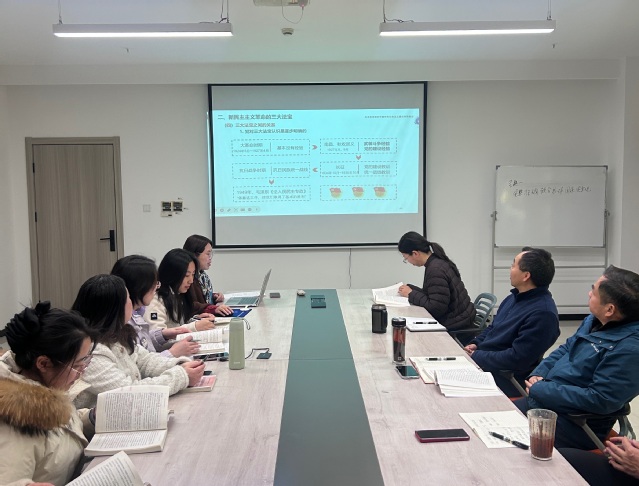 备课会上,钟小燕老师围绕专题三(二)新民主主义革命的道路和基本经验,系统梳理教学重难点,结合历史脉络与典型案例,清晰阐释理论逻辑与实践路径。嵇栩老师就专题四社会主义改造理论进行说课展示,紧扣教材内容与时代要求,明确教学目标、优化教学设计,为课堂实施提供清晰思路。