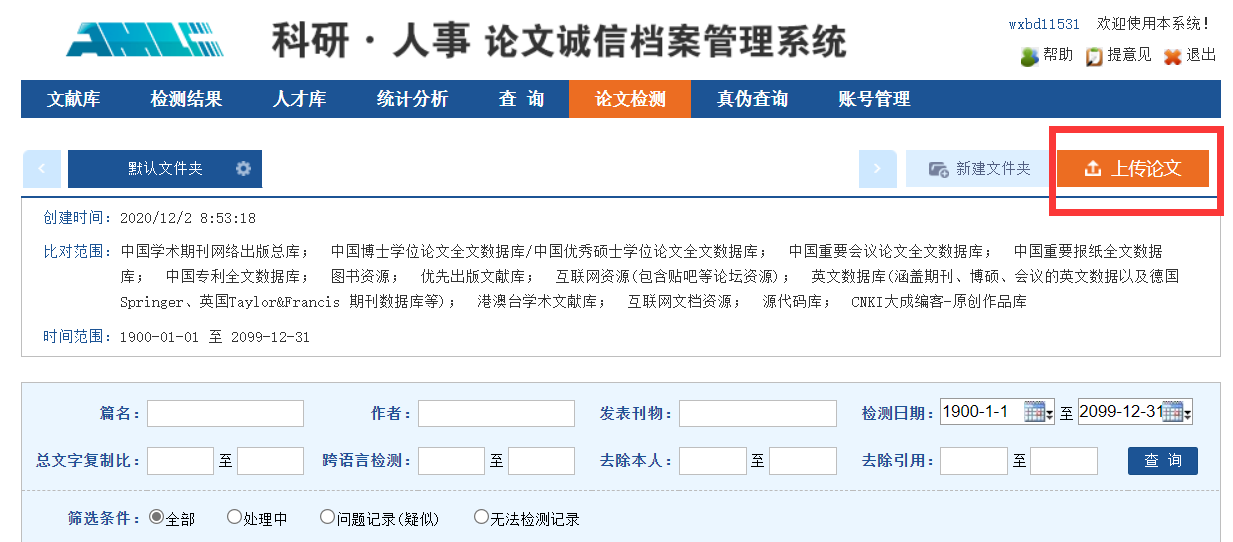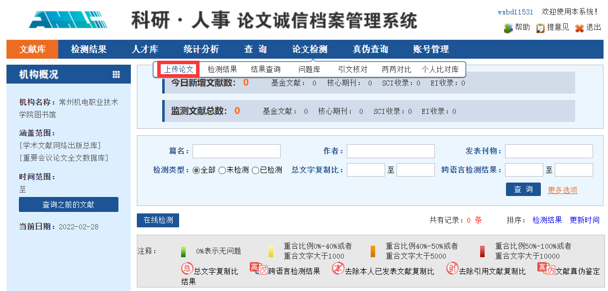 (1)本系统采用校级统一账号管理,图书馆已将检测账号分配至各党总支。