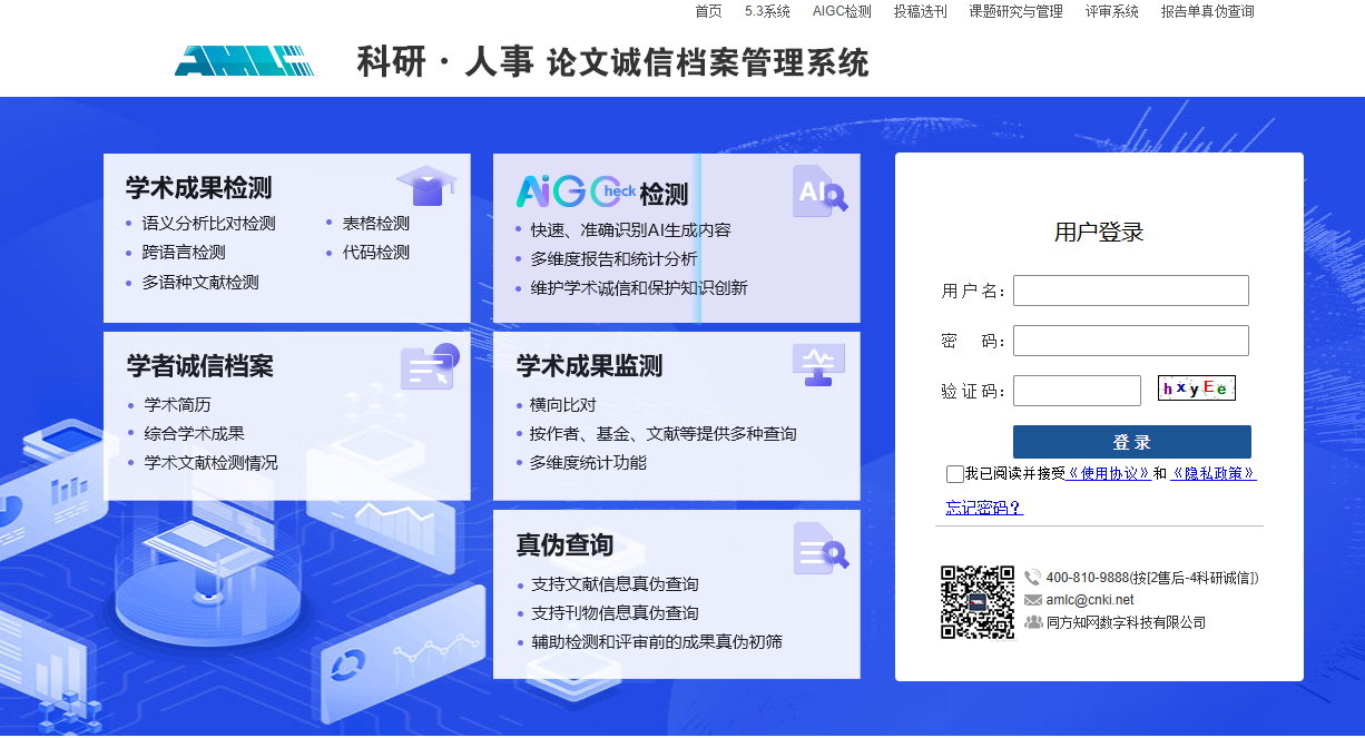 为更好地支持我校教职工的科研工作与学术发展,满足科研论文等学术成果的相似性检测需求,图书馆已正式采购“中国知网”科研人事论文诚信档案管理系统(即论文相似性检测系统),面向校内教职工提供服务。为确保各位老师能够顺利、规范地使用该系统,现将相关使用说明与流程通知如下: