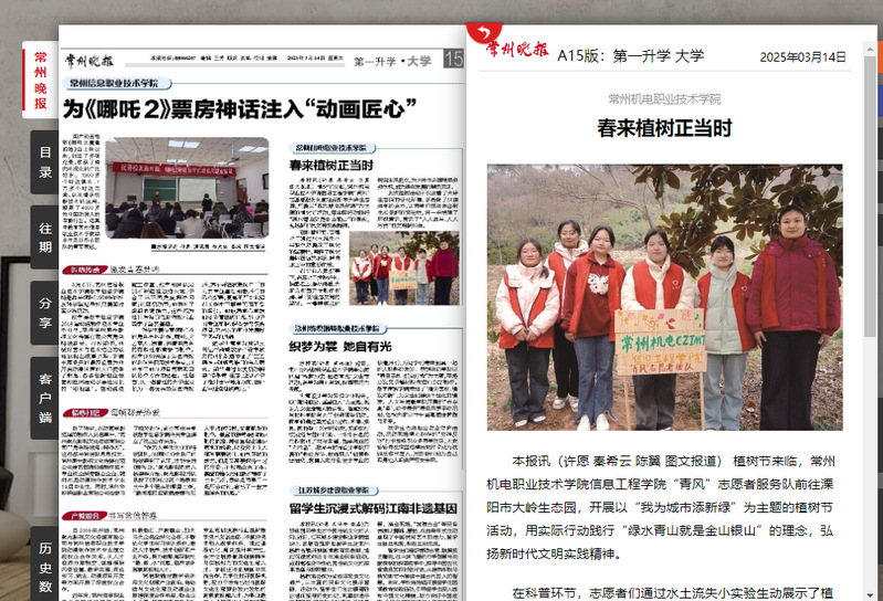 本报讯(许愿 秦希云 陈翼 图文报道) 植树节来临,常州机电职业技术学院信息工程学院“青风”志愿者服务队前往溧阳市大岭生态园,开展以“我为城市添新绿”为主题的植树节活动,用实际行动践行“绿水青山就是金山银山”的理念,弘扬新时代文明实践精神。