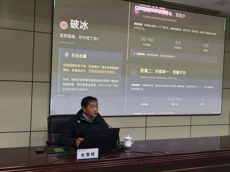 余雪辉以学校广播台的发展实践为生动案例,深入剖析了新媒体时代的传播特点与发展趋势。他深刻阐述了加强青年思想引领工作的时代紧迫性与战略意义,并从理论高度与实践维度,系统讲解了如何利用新媒体平台有效凝聚青年、引领思想,以及如何全面提升青年学生的网络素养,培育清朗网络空间的积极建设者和正能量的有力传播者。