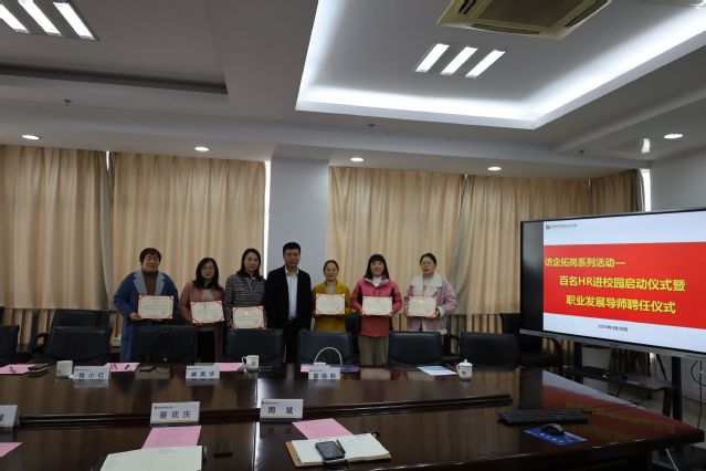 访企拓岗促就业—— 招就办举办“百名HR进校园”启动暨校外职业发展导师聘任仪式 发布时间:2023-04-01 作者: 访问次数:1639 3月30日,常州机电职业技术学院“百名HR进校园”启动暨校外职业发展导师聘任仪式在图书馆楼806会议室举行。招生就业办公室主任刘刚,8家校企合作企业HR,就业指导与职业素养提升课程团队教师参加此次活动。 刘刚代表学校向合作企业长期以来对学校的支持表示感谢,他从人才培养、专业建设、产教融合等方面介绍了学校发展情况,希望企业经理人能够结合自身阅历和从业经验协助学校做好就业指导工作,为学生职业发展答疑解惑,指点迷津,引导毕业生树立科学理性的职业观、就业观,促进学校毕业生高质量就业。 刘刚为钱小红、徐文媛等8位校外职业发展导师颁发聘书。 苏文电能科技股份有限公司人事经理徐文媛作为导师代表发言,表示受聘职业发展导师是信任、更是责任,将尽己所能向学生提供职业指导和职场经验,向学生传递企业真声音、好声音。 就业指导与职业素养提升课程团队主任周斌就业目前就业指导与职业素养提升课程的授课现状、课程设计、教案设计以及授课痛点等方面进行了汇报。 在随后的互动环节,企业HR就目前遇到的员工关系管理、员工培训以及对就业指导课程设计、课程授课重点等多方面进行了交流互动,并提出了卓有成效的建议。 本次活动是我校访企拓岗系列活动之一,学校将坚持“请进来”“走出去”,推动政府、企业深入参与我校就业工作,凝聚资源,形成合力,构建政校企协作育人共同体。 (供稿:周斌 编辑:史重庆 审核:刘刚)