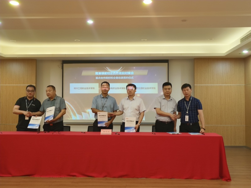 访企拓岗促就业-我校参加隆基绿能校企合作项目推介交流会 发布时间:2023-07-11 作者: 访问次数:1339 7月7日,“隆基绿能校企合作项目推介交流会”在江苏隆基乐叶光伏科技有限公司举行。江苏泰州隆基光伏科技有限公司总经理陆顺书等公司领导出席活动。全国7所高职院校代表参加此次活动。我校产教合作部部长刘刚,机械工程学院副院长王行刚等一行受邀参会。 陆顺书在会上对高职院校代表们的到来表示欢迎并致辞。隆基绿能集团作为世界光伏产业龙头企业,在太阳能光伏行业发展迅速,产能呈几何倍数增长,集团公司对人才的需求非常大,高技能型人才的引进直接关系到公司未来的发展状况,同时集团公司也为引进的技能人才提供优质的员工待遇和较好的晋升机会,希望通过本次活动,公司与各高职院校建立良好的校企合作关系,在人才引进,技能培训等方面实现双向奔赴。 刘刚围绕学校产教融合“内园外站、四维一体”的创新模式、以高水平专业群建设为重点,以点带面,推进校企深度合作等方面详细介绍了学校产教融合、校企合作工作成效和学生实习就业情况。 会上各高职院校代表分享交流校企合作工作经验,并与隆基绿能集团签订校企合作备忘录,在人员招聘,技能培训,技术服务等方面与隆基绿能公司参会领导进行了深入交流。 学校将持续开展“访企拓岗促就业”专项行动,进一步推动新能源方向专业建设和高技术技能人才培养,深入了解用人单位需求;进一步助推学校的高质量发展,提优学校人才培养供给力,精准度;进一步提升学校核心竞争力,提高学校社会服务水平,促进毕业生更充分更高质量就业。 (供稿:陈琳 编辑:刘骏 审核:刘刚)