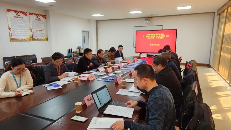 人工智能产业学院举行2023年建设成果汇报会暨人才培养服务验收会 发布时间:2023-12-22 作者: 访问次数:1093 12月20日,在信息工程学院318会议室举行了人工智能产业学院2023年建设成果汇报会暨人才培养服务验收会。常州大学教授朱正伟、常州纺织服装职业技术学院副校长张文明、常州市激光技术研究所有限公司高级工程师兼总经理袁伟栋,我校教务处处长吴荣、科研处处长蔡福海、信息工程学院副院长(主持工作)楼竞、副院长杨保华、杨建新,人工智能产业学院企业负责人王福章及企业工程师参加本次会议。会议由产教合作部部长刘刚主持。 王福章汇报了产业学院基本情况和2023年的建设成果以及2024年工作规划,展示了产业学院建设管理中的具体举措和过程资料。专家组针对产业学院的建设举措、建设成果和未来发展展开研讨。专家组充分肯定了人工智能产业学院2023年在人才培养、专业内涵建设、创新创业、科研和社会服务等各个方面取得的成绩,尤其对在技能大赛和教学能力大赛方面取得的重大突破表示称赞。 与会专家一致认为人工智能产业学院建设符合并超出验收要求,同时对产业学院2024年的建设发展提出了更高要求,希望人工智能产业学院紧密围绕智能制造产业发展和学校特色,前瞻性探索人工智能前沿技术领域,以人工智能赋能细分技术领域为抓手,打造特色标签。产业学院在后续工作中将以学校下一轮双高建设为契机,进一步做好标签特色打造、师资可持续发展和创新探索实践,争取更多重点绩效产出。