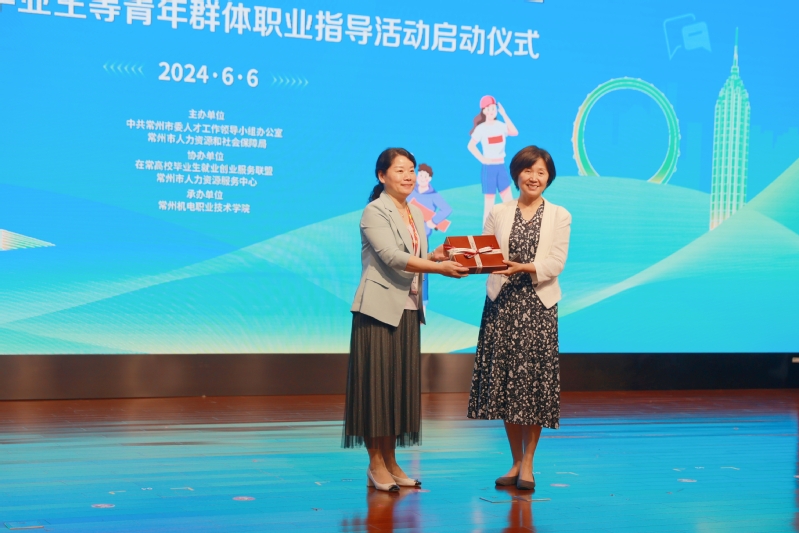 常州市高校毕业生等青年群体职业指导活动启动仪式在我校举行 发布时间:2024-06-07 作者: 访问次数:1026 6月6日,勇往职前筑梦远航—常州市高校毕业生等青年群体职业指导活动启动仪式在我校图书馆红厅举行。常州市人力资源和社会保障局局长王竹林,江苏省委党校社会和文化教研部教授、南京大学社会心理学博士、中国社会心理学会常务理事黄菡,常州市人力资源和社会保障局党组成员、副局长、常州市人力资源和就业创业管理中心主任苏叶,常州市委人才工作领导小组办公室人才工作处副处长罗杨,我校党委书记沈琳,党委委员、副校长黄宝玲等领导出席活动。在常各个高校教师代表以及我校相关职能部门、各二级学院负责人、辅导员和学生代表共计500余人参加本次活动。 沈琳致欢迎辞。他指出,党的十八大以来,围绕促进高校毕业生等青年就业,习近平总书记作出了一系列重要论述,强调要坚持把高校毕业生等青年群体就业作为重中之重。高职毕业生占据高校毕业生群体的“半壁江山”,是支撑区域产业转型升级和城镇化发展的重要力量。2024年,面对严峻复杂的就业形势、艰巨繁重的就业任务,学校将毫不动摇地坚持促进就业,在市人社局、人才办等部门的指导和帮助下,进一步汇聚政府、社会和企业等各方合力,千方百计扩岗位、搭平台、拓渠道,为毕业生创造更多、更好的就业选择和机会。 王竹林在讲话中指出,常州致力打造“全国青年创新创业最向往城市”,通过擦亮“龙城英才”“青春留常”等品牌,关爱青年、赋能青年。本次活动,是政校联手、贯通校内外职业指导路径的首次合作,通过“名师授课”的方式,帮助大学生提高就业认识、明确择业方向、制定职业规划,为未来发展奠定坚实基础,顺利完成重要阶段的蜕变和转型。希望学校一如既往地重视和支持青年发展,引领青年坚守奋斗初心、践行青春使命、绽放青春之花。 王竹林、沈琳、黄菡、苏叶、黄宝玲、罗杨共同启动了常州市高校毕业生等青年群体就业指导活动。 活动现场,黄菡教授以《工作中的积极心理建设》为主题,围绕大学生日常生活的各种心理痛点,从反思生活信念、管理工作压力、调整挫折反应、建设重要关系等四个方面提出了系统而有针对性的建议,为毕业生平衡工作与生活,融通踏入社会的心理建设,帮助其顺利就业。黄菡教授睿智、优雅的谈吐,精彩生动的演讲,让在场师生收获满满。 讲座结束后,黄宝玲副校长向黄菡教授赠送了由我校创意设计学院邢粮梳篦大师工作室制作的精美梳篦。 本次活动聚焦高校毕业生等青年就业群体,强化促进青年就业政策举措,优化就业创业指导服务,由中共常州市委人才工作领导小组办公室、常州市人力资源和社会保障局主办,在常高校毕业生就业创业服务联盟、常州市人力资源服务中心联合我校共同承办。 (供稿:史重庆 编辑:刘正银 审核:刘刚)