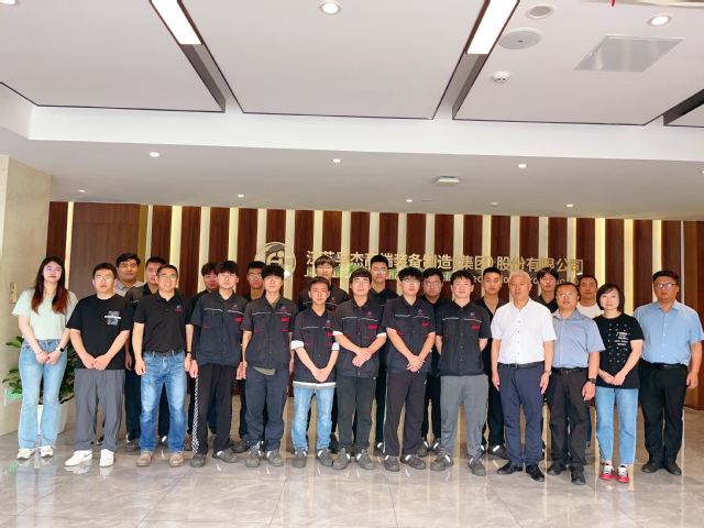 我校与孚杰集团举行订单班开班仪式 发布时间:2024-07-07 作者: 访问次数:895 7月2日,我校机械工程学院院长刘江一行赴孚杰集团看望实习学生并举行现代学徒制订单班开班仪式。孚杰集团副总裁、堆焊事业部总经理艾永宾热情接待。孚杰订单班全体同学参加活动。 仪式上,孚杰集团堆焊事业部主管张中林对订单班同学进入企业以来的情况进行了阶段性总结,充分肯定了同学们的学习能力,对同学们后续工作能力的提升也提出了要求和期望。 艾永宾指出,孚杰集团将在共同培养人才、产教融合等方面与学校深入开展合作,充分发挥企业在行业中的优势,制定一系列培训课程快速高质量完成专业基础知识与岗位应用技能的转化,全方位培养人才,用好人才。 刘江指出,本次订单班合作是校企合作、产教融合的又一次里程碑。学校将严格执行共同商议的人才培养方案,全方位保障订单班顺利进行;要求学生一要善于发现问题并解决问题,二要做难事,做不易解决的事,做能够坚持的事,三思考问题要深入并不断总结,四要勇于展示自己。 订单班同学与老师也深入交流,介绍了目前岗位学习与实习情况,专业知识在生产过程中的应用情况,同时还提出了部分问题和要求,希望老师和企业能够予以解决。 会后,刘江一行参观了孚杰集团生产车间。 (供稿:李明达;编辑:陈翼;审核:游杰)