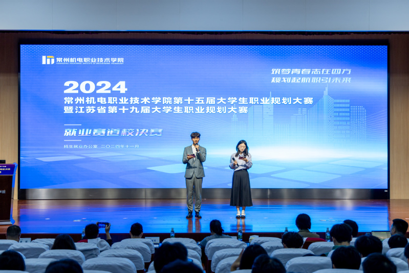 我校第十五届大学生职业规划大赛暨江苏省第十九届大学生职业规划大赛选拔赛(就业赛道)校决赛圆满落幕 发布时间:2024-11-05 作者: 访问次数:942 2024年11月2日下午,“筑梦青春志在四方,规划启航职引未来”常州机电职业技术学院第十五届大学生职业规划大赛暨江苏省第十九届大学生职业规划大赛选拔赛在图书馆红厅圆满落幕,9位杰出选手以实力为基、以梦想为翼,诚挚投入地讲述了自己的职业目标与实践历程,展现了他们心系“产业发展”、践行“知行并进”校训的新时代青年担当,为在校学子带来一场朋辈引领的职业规划第一课。 江苏海事职业技术学院基建处处长孙蕾、无锡工艺职业技术学院招生就业处处长徐微、无锡科技职业学院招生就业处处长周闰芳、锐捷网络(苏州)有限公司副总经理、江苏省产业教授李德才、南京择善信息科技有限责任公司总经理李刚受邀担任本次大赛评委。本次活动由产教合作部、招生就业办公室主办,各学院党总支副书记、指导老师、学生代表们现场观赛。 比赛自2024年4月启动以来,历经海选、初赛、复赛等环节,就业赛道共有来自各个学院的9名选手参加现场决赛。现场决赛分为综合展示与现场面试两个环节,选手们分别阐述了自己的职业目标设定、学习实践成果以及未来展望,设立的职业目标涉及质量管理、国产新能源汽车销售经理、供应链管理、工业模具维修、跨境电商、信息安全工程师等多领域。最终,来自模具技术学院的选手石祥涛获一等奖;信息工程学院刘颖、交通工程学院陆立伟和电气工程学院周家乐3名选手获二等奖;创意设计学院赵越、模具技术学院沈鹏程和经济管理学院朱伯谕3名选手获三等奖;电气工程学院甄明儒、经济管理学院张钰芳2名选手获优秀奖。 大赛同期校院两级成功举办了师资培训、辅导活动、职场体验、参赛作品打磨等各类就业育人活动,充分激发了学生职业规划意识,将大赛打造成强化职业规划的大课堂、促进人才供需对接的大平台、服务毕业生就业的大市场,实现就业育人的有效实践落地,全力促进我校毕业生实现高质量充分就业。