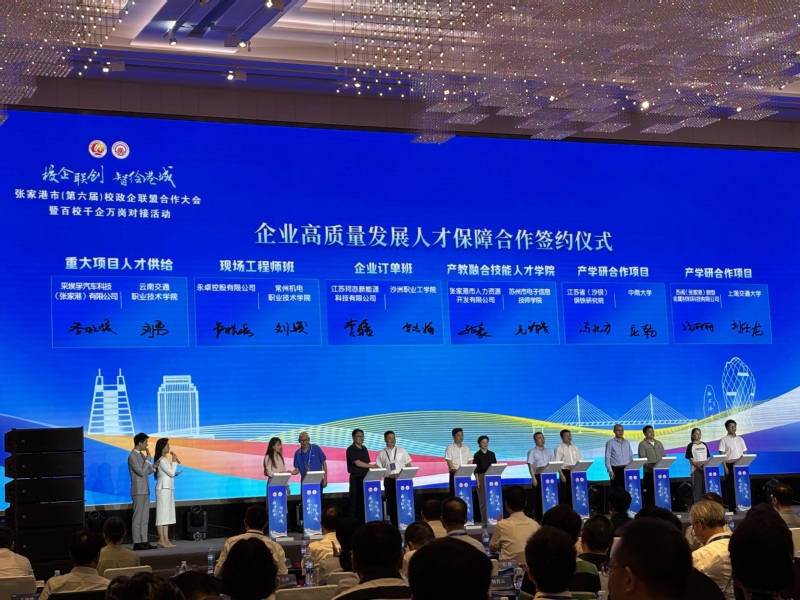 我校参加2025年张家港市(第六届)校政企联盟合作大会暨百校千企万岗对接活动 发布时间:2025-06-16 作者: 访问次数:260 6月13日,“校企联创 智绘港城”2025年张家港市(第六届)校政企联盟合作大会暨百校千企万岗对接活动在张家港举行。江苏省人社厅二级巡视员吴敏超,张家港市领导韩卫、顾晓东、邵军民等出席活动。我校产教合作部副部长刘骏、苏州工作站站长杨友利等参加此次活动。 吴敏超在会上致辞,张家港作为全省高质量发展的先进县(市),扎实推进人才高地和引才平台建设,拓展揽才聚智的“合作版图”,重塑拴心留人的“最优生态”,做强产业发展的“智力支撑”,合力打造校政企协同的示范标杆。 大会现场进行了张家港市创新创业环境推介、人才政策介绍、校政企合作优秀案例展示,举行了张家港卓越工程师培养合作基地的授牌活动和校园引才基地的授牌活动,以及高素质应用型人才培养、人才高地建设跨区域合作签约等仪式;会上,刘骏代表学校接受张家港市卓越工程师培养合作基地授牌,并与永卓控股有限公司举行企业高质量发展人才保障合作签约仪式。 在百校千企万岗对接活动中,我校与江苏沙钢集团有限公司、江苏澳洋顺昌科技材料有限公司、永卓控股有限公司等重点企业开展精准人才供需对接,并围绕产教融合与人才培养进行了深入的交流并达成初步合作意向。 本次活动,通过政府搭平台,校企建桥梁,政校企齐聚力,打造合作不停歇、服务不断线的港城就业高质量服务体系,为学校毕业生提供更多更优的实习就业岗位,确保毕业生高质量充分就业。 (供稿:杨友利;编辑:刘正银;审核:刘刚)