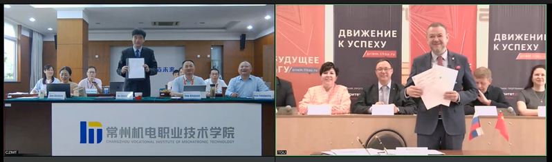 5月31日下午,莫斯科时间上午10:00,我校与陶里亚蒂国立大学合作办学签约仪式在云端隆重举行。陶里亚蒂国立大学校长克里斯塔尔·米哈伊尔·米哈伊洛维奇、陶里亚蒂市政府国际和区域间关系部等多名领导参加。我校校长许朝山、副校长周庆元、机械工程学院、信息工程学院、国际教育学院领导及相关人员参加了会议。