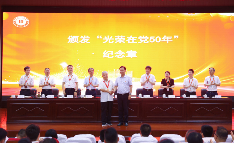 大会表彰了学校优秀共产党员、优秀党务工作者和先进基层党组织。同时,向符合条件的老党员裴树波同志颁发了“光荣在党50年”纪念章,表达对老党员的亲切关怀和褒扬。