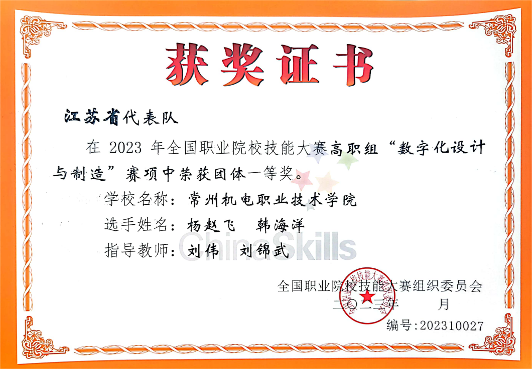 9月5日—7日,2023年全国职业院校技能大赛(高职组)“数字化设计与制造”赛项在安徽机电职业技术学院举行,来自全国各省、直辖市、自治区以及新疆生产建设兵团的74支代表队参加比赛。机械工程学院院长刘江领队,刘伟、刘锦武两位老师指导,杨赵飞、韩海洋组成的团队获得学生组赛项一等奖。指导教师刘伟、刘锦武获得“优秀指导教师”称号。