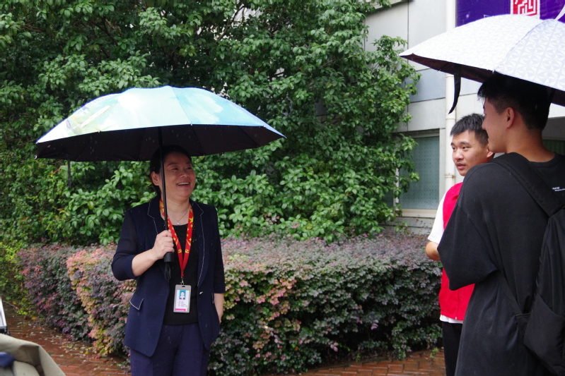 全体校领导前往迎新现场,看望慰问了前来报到的2023级新生、家长及工作人员,了解各学院迎新情况,走访了新生宿舍,并和新生及其家长进行了亲切的交流。校党委书记沈琳嘱咐工作人员要全力做好迎新服务工作,尽可能地为新生及家长提供便捷的服务。校长许朝山代表学校欢迎学生和家长的到来,在现场解答新生及家长的疑惑,留下了自己的联系电话,鼓励新生尽快适应大学生活。现场一位助班说到,去年迎新时校领导为他过集体生日,给他留下了深刻的印象,今年他主动承担起“助班”的责任,五点多就来到现场,将温暖传递下去。