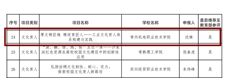近日,省委教育工委、省教育厅公布了第二批江苏高校思想政治工作质量提升工程建设项目遴选结果。我校文化育人项目《厚文铸匠魂 精技育匠人——工业文化育人体系构建与实践》获江苏高校思政精品项目,并被省教育厅推荐参加教育部评比。