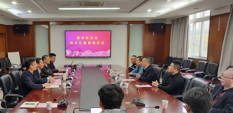 11月8日,学校在勤业楼第三会议室举行南京校友会校庆礼服捐赠仪式。校党委书记沈琳、副书记朱平、副校长刘贤锋,南京校友会会长刘海波、副会长范玉龙、秘书长周超、校友代表郭家明出席,各党总支书记、分工会参加了仪式。校友工作办公室主任刘刚主持仪式。