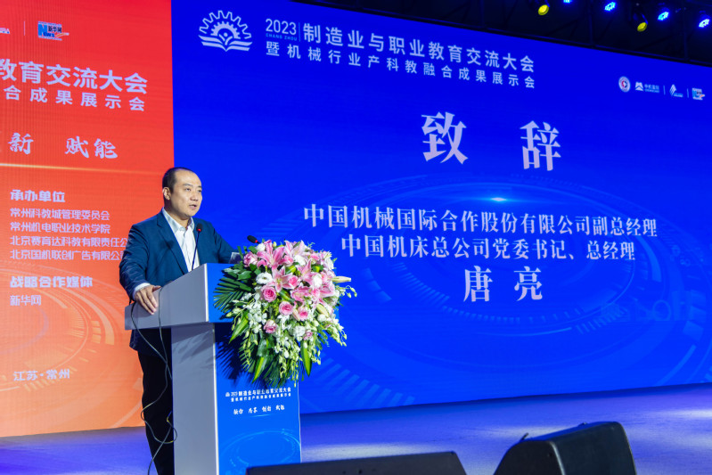 11月10日上午,2023制造业与职业教育交流大会暨机械行业产科教融合成果展示会在我校体育馆开幕。中国机械工业联合会党委常委、原执行副会长于清笈,常州市政协副主席、常州科教城主任祝正庆,江苏省职业技术教育学会秘书长李振陆,机械工业教育发展中心主任陈晓明,中国机械国际合作股份有限公司副总经理、中国机床总公司党委书记、总经理唐亮,中国机械工业联合会智能制造分会秘书长刘前军,中国职业技术教育学会副会长、天津大学职业教育研究所所长孙善学,二重(镇江)重型装备有限责任公司党委书记、董事长杨靖,常州市教育局副局长王华刚,常州市工信局处长于波以及我校党委书记沈琳、校长许朝山等出席开幕式。来自全国装备制造企业、本科院校、职业院校、科研机构等200多家单位的500余名代表参会。