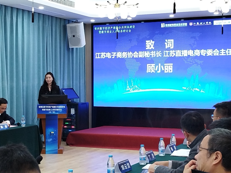 顾小丽发表讲话。她指出,数字经济和电子商务是当今社会发展的重要方向,两者相互依存,相辅相成,共同推进经济繁荣和社会进步,数字经济提供的基础设施和技术支持,为电子商务发展提供了条件,而电子商务则是数字经济的应用场景之一。江苏省电子商务协会在省商务厅的领导下,持续深入贯彻党的二十大精神,自觉把自身工作统筹到全省电商工作全局中,以高水平推动数字经济发展和传统产业转型升级,推动电商高质量发展再上新台阶。同时,协会也将积极协助常州培养数字商业人才,发展电商直播等新业态新模式,推动数字经济和电子商务传统产业深度融合,助推常州数字经济建设高质量发展。