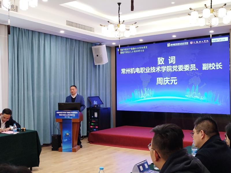 周庆元致辞。他表示,我校作为共同体牵头建设单位之一,将认真贯彻落实上级方针政策,以服务行业、服务院校、服务企业为宗旨,落实三新举措,一是创新运行新机制,二是释放校企新活力,三是打造产教科共筑新生态,培养数字经济产业高端急需的拔尖技术技能人才,打通校企所学中的堵点,通过产教科供需对接的锻炼,产生更多的标志性的成果,打造共同体务实合作的标杆和样板。
