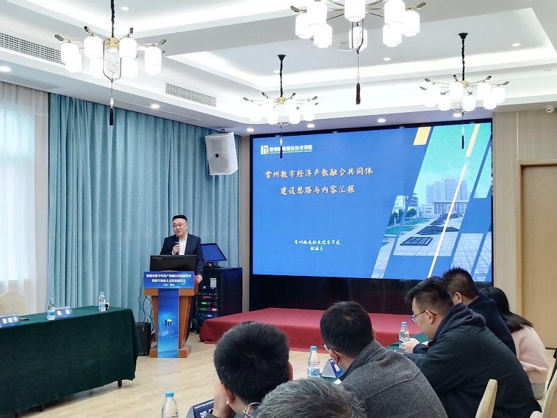经济管理学院副院长张瑞夫汇报了常州数字经济产教融合共同体建设思路与内容。与会单位就数字经济产教融合共同体建设内容与路径、数字商业人才培养新模式与生态、产教融合赋能数字商业人才培养创新等主题进行了研讨。