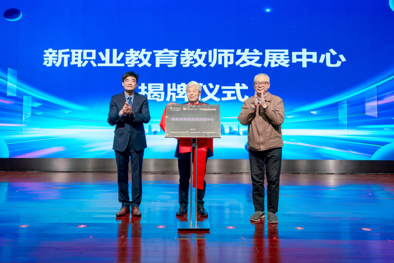 11月12日下午,我校在图书馆红厅举行新职业教育教师发展中心揭牌仪式。中心由我校与西交利物浦大学、江苏省机械工业协会三方共建。西交利物浦大学执行校长席酉民教授、江苏省机械工业协会秘书长贾杏林先生、我校校长许朝山为新职业教育教师发展中心揭牌。