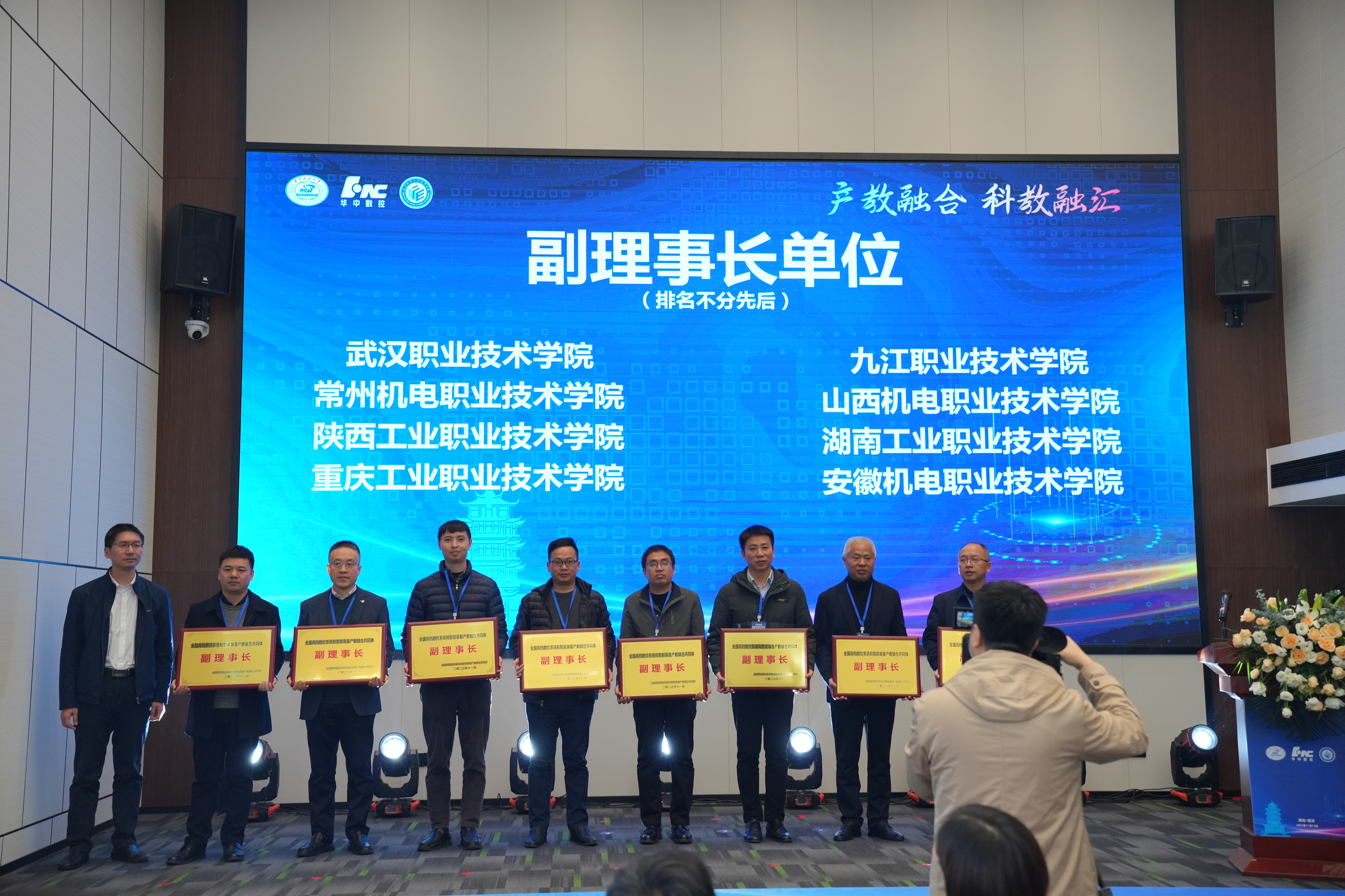 11月14日,全国高档数控系统和智能装备产教融合共同体(以下简称“共同体”)在武汉成立。大会上公布了第一届理事会单位名单和专家委员会名单,我校成功当选为副理事长单位,我校机械工程学院院长刘江获聘专家委员会委员。