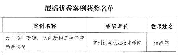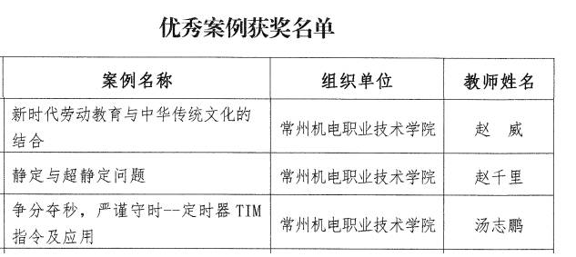 11月23日,“以劳树德 以劳启智”首届高校劳动教育示范案例征集展播活动评选结果出炉,我校杨婷婷《大“器”磅礴,以创新构筑生产劳动新格局》入选前50展播优秀案例,赵威《新时代劳动教育与中华传统文化的结合》、赵千里《静定与超静定问题》、汤志鹏《争分夺秒,严谨定时—定时器TIM指令及应用》入选优秀案例。学校获优秀组织奖。