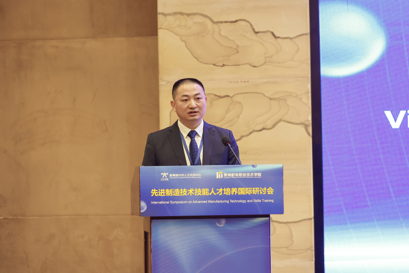 许朝山致辞。他表示,先进制造技术是当今世界科技发展的前沿领域,关系到国家的经济命脉和民族的生存发展。在全球经济一体化的大背景下,中外人文交流对于推动先进制造技术的发展意义重大。在教育部中外人文交流中心的大力支持下,举办此次先进制造技术技能人才培养国际研讨会,正是贯彻落实新时期教育对外开放战略的具体体现,是积极推进“留学中国”行动计划、持续提升国际化人才培养质量的重要内容,也是智能制造企业、院校提升国际合作水平的重要举措。