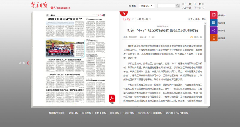 学校立足地方、扎根社区、主动融入,打造“4+7”社区教育党团联动工作机制,形成纵向贯通、横向融通的社区教育培训体系。学校作为江苏省社会教育百强单位,牵头打造常州“三宝”非遗文化传承创新共同体,设立“常州社区大学机电分校”,建设江苏省高校银龄学习中心、江苏省社区教育“优质项目化基地”、常州市社区教育科研基地等平台,赋能常州市终身教育创新发展。